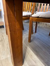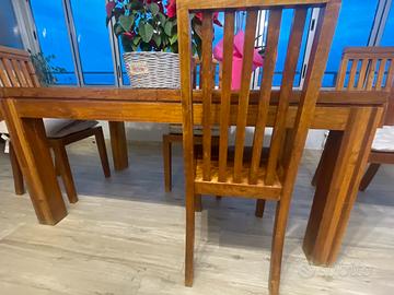 Tavolo in legno massello con quattro sedie allungabile. Chiuso 160x90 aperto 200x90. Ha una zampa danneggiata ma riparabile. Una sedia e’ danneggiata. Il tutto in buone condizioni ed eventualmente da ritirare. No spedizione.