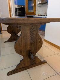 Bellissimo tavolo in legno massello. Struttura artigianale fatta su richiesta, autoportante con incastri perfetti, non dondolanti, 4 viti di sicurezza solo per il piano superiore.