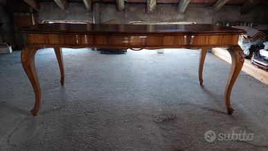 Tavolo rettangolare stile imperiale anni 50, in noce. Adatto per abbinamento con sedie moderne o da verniciare argento. Dimensione 2m x 1m. Disponibili anche 8 sedie abbinate. Prezzo trattabile.