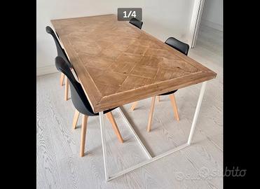 Tavolo da pranzo fatto su commissione da un artigiano fiorentino. Mai usato. Perfetto. Non è un prodotto commerciale. Il ripiano è stato tutto lavorato a mano con legno riciclato e trattato con prodotti naturali per non assorbire i liquidi. Base resistente di metallo antimacchia. Il sotto è nero e lo abbiamo fatto dipingere bianco quindi c’è doppia opzione. Smontabile in due pezzi. Stupendo!!! Misure 200x90. Pagato 3.200 euro. Lo stiamo svendendo a questo prezzo e lo vendiamo a malincuore solo per causa trasloco all’estero. No trattabile