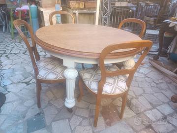tavolo stile inglese con rotelle non allungabile per non ci sono le prolunghe a cui è stato fatto un restyling completo shabby provenzale comprese quattro sedie.(.il tavolo è molto pesante non smontabile) zona Alessandrino