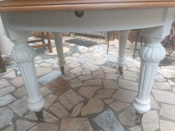 tavolo stile inglese con rotelle in legno massello, molto pesante..il tavolo non è allungabile perché non ci sono le prolunghe e la manovella che serviva per allungare..al tutto è stato fatto un restyling completo shabby chic.. diametro 120.. zona Alessandrino