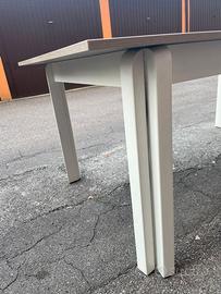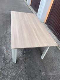 Vendo tavolo da pranzo in ottime condizioni, solido e stabile. Il piano è effetto legno chiaro, mentre la struttura e le gambe sono bianche, con uno stile moderno e pulito che si adatta facilmente a cucina, soggiorno o taverna.