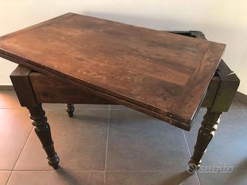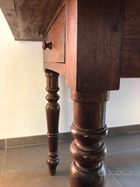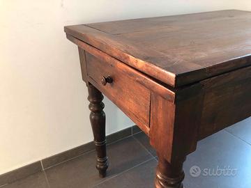 Vendo tavolo vintage in noce, stile piemontese con gambe tornite e piano estensibile. Oggetto sano e tenuto con cura. Dimensioni standard: larghezza cm 107, profondità cm 64, altezza cm 81. Dimensioni con piano aperto: larghezza cm 127, profondità cm 107, altezza cm 78. L'oggetto si trova in Chieri. Ritiro a carico dell'acquirente (c'è l'ascensore). Vendo perché cambiamo casa ed abbiamo bisogno di un tavolo più grande. Non spedisco.