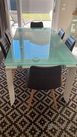 vendo, causa parziale rottura del piano in vetro temperato acidato (vedi foto), tavolo modello Stilt della Desalto a €. 450,00. Dimensioni, larghezza cm 85, lunghezza senza prolunghe cm 170, le prolunghe (entrambe intatte) misurano lunghezza cm 42,50 pertanto, la lunghezza totale è di cm 255. Per maggiori informazioni contattare il 3472912410.