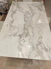 tavolo stones allungabile con top in ceramica (5mm) su vetro temperato (8mm), industrial syle versatile.Gambe in metallo verniciato. Lunghezza 160/240 cm - Larghezza 90 cm - Altezza 76 cm - Peso netto 124 kg.