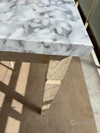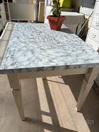Tavolo cucina stosa 80 x 125 ed allungabile, con tavola rotazionale, di 40 cm. Colore Verde effetto marmo (ricoperto con carta adesiva da togliere nelle foto per cambio arredamento). 4 sedie