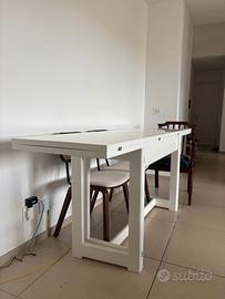 Vendo tavolo a ribalta fatto su misura dal falegname, comodo da aprire e richiudere. Di seguito le misure: Tavolo Chiuso: - Larghezza: 50cm - Lunghezza: 200cm - Altezza: 80cm Tavolo Aperto: - Larghezza: 100cm - Lunghezza: 200cm - Altezza: 78cm