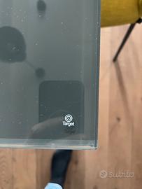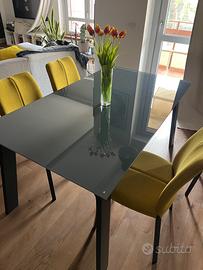 Tavolo in ottime condizioni Deimos target 160 per 90 allungabile a 240 Prolunghe incluse Vetro temperato con righi assolutamente superficiali lavorabili da vetreria