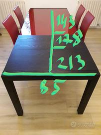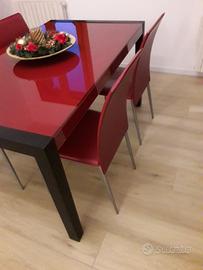 Tavolo compreso di 4 sedie in pelle rossa. Stato ottimo a 590€.