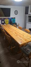 vendo tavolo taverna con 8 sedie lunghezza 3 mt altezza 80cm larghezza 80 cm. il tavolo ha dei graffi sopra in alcuni punti. trasporto a carico dell'acquirente. prezzo non trattabile