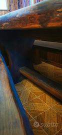 Tavolo rettangolare in ottomissime condizioni,piano ricavato da un unico tronco, lunghezza mt 3,80, larghezza 80 cm, spessore 8 cm, composto da 4 panchine lunghezza mt 1,80 e da due sedie. Foto in allegato. Valuto varie proposte economiche.
