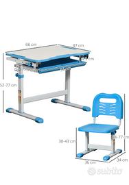 Come da titolo vendo banco scuola per bambini colorazione bianco azzurra, il prodotto è usato ma in ottimo stato, oltre il banco si vende anche la sedia, anch'essa regolabile.