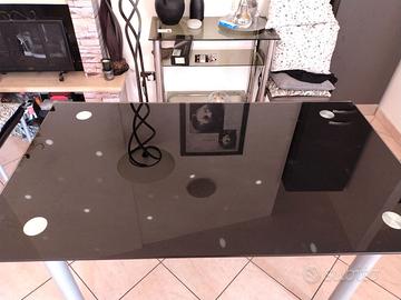 Tavolo in vetro nessuna spaccatura nessun graffio al vetro scuro ha un supporto gambe in acciaio 140x80 possibilità di aggiungere 4 sedie in similpelle grigie e possibilità di visionare sul posto prezzo trattabile alla visione
