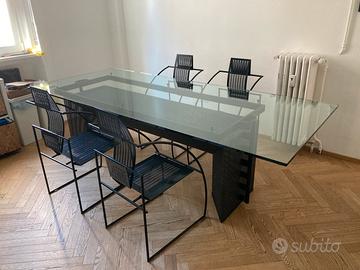 Set tavolo Tesi e 4 sedie Quinta di Mario Botta. In ottime condizioni, leggera usura sedie dovuta a utilizzo. Elegante, ma anche resistente e robusto, investimento perfetto per ogni appassionato di design. Dimensioni: altezza 73cm, larghezza 86 cm, profondità 239 cm