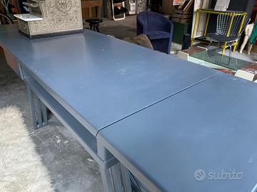 Vendo bellissimo tavolo tipo console, ideale da utilizzare come banco per registratore di cassa oppure come tavolo da reception. Il tavolo è smaltato e presenta dei normali segni dati dall’usura. Le misure del tavolo sono 139x65 ed è alto 90 cm mentre aperto è lungo 204 cm.