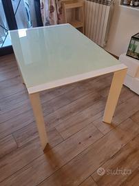 Tavolo Tomasucci allungabile in vetro temperato, gambe Colore bianco. Presenta qualche piccolissimo graffietto quasi impercettibili. Misure chiuso 80×120 Misure Aperto 80×180 No Spedizione. Roma