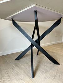 Elegante e moderno, tavolo tondo da 120 cm ha piano in ceramica bianca effetto marmo e solidi piedi in ferro nero.