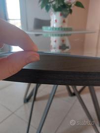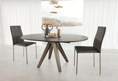 Vendo tavolo Apple di Zamagna acquistato da Ricci casa. Il tavolo ha un diametro di 120 e la struttura si allunga fino ad arrivare a 165 (vedi ultima foto). Ha una altezza di 75, la struttura è in metallo marrone mentre il piano è in finitura noce termocotto. È stato sempre tenuto in maniera maniacale. Lo vendo unitamente alla protezione su misura, acquistata a parte. Le sedie (modello Maiorca acquistate sempre da Ricci casa) anch'esse tenute in modo maniacale, sono color fango in tessuto lavabile antimacchia e struttura in metallo marrone. Il tavolo attualmente ha un costo di 840euro mentre le sedie 176 ognuna, per un totale di 1544 + trasporto. Cedo tutto a 1000euro, con possibilità di visione se interessati.