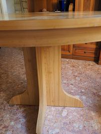 Tavolo tondo, diametro 114 cm, altezza 80 cm in buono stato molto robusto, e 4 sedie in legno massiccio in buonissimo stato.