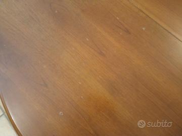 Vendo tavolo tondo in buono stato, qualche punto di scrostatura come visibile in foto, allungabile con prolunga a scomparsa. Misure: chiuso cm 120, con prolunga cm 160.