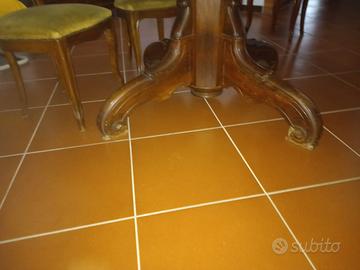Tavolo tindo allungsbile ‘800, legno massello, cm 165x182, con tre assi allungabili da 58 cm, 9 sedie.