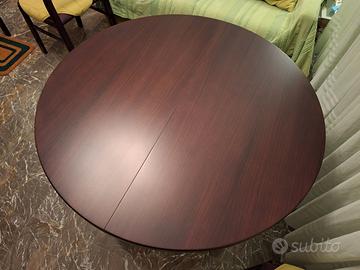 Vendo tavolo tondo anni 70 in legno, con qualche piccolo segno del tempo (visibile in foto), ma in ottime condizioni. Diametro 115 cm, allungabile a 155 cm. Costo 130€. Possibilità di acquisto di 4 sedie abbinate, rivestite con stoffa (marrone) e in discrete condizioni. Costo 15€ cadauna, 50€ se acquistate in blocco. Il tavolo è già smontato (semplice da montare, 6 viti). No perditempo. Ritiro a carico dell'acquirente, no spedizione.