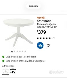 Tavolo tondo allungabile ikea bianco Da 4 -8 posti comodi Usato Acquistato 5 anni fa Vendo causa ristrutturazione (Disponibile anche sedieprezzo trattabile)