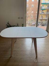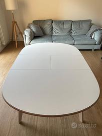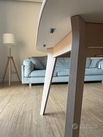 Tavolo rotondo allungabile Mikado Ondarreta 100x120 (100x160). Struttura in frassino e top in fenix bianco.