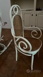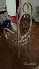 Vendo come da descrizione e foto. Le sedie sono da ripitturare ma la paglia è in buono stato. Diametro tavolo 118 cm e a,tezza 74 cm Misure sedia Profondità 49 cm, larghezza massima 52 cm, altezza 112 cm, altezza bracciolo 72 cm