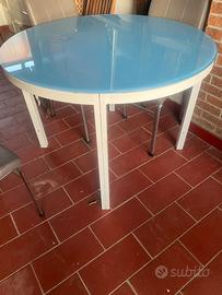 Vendo tavolo tondo con cristallo celeste e bambù in ferro largo 105cm alto 75cm