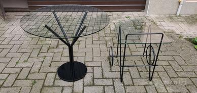 Causa cambio di arredamento, vendo coppia formata da tavolo rotondo con piano in vetro e carrello bar mobile, anche'esso in vetro. Il piano del tavolo ha diametro di 85 cm e spessore di 8 mm. Il sostegno è in metallo verniciato nero. Tutto è in buone condizioni. Chiedo 150 euro di tutto. Al momento non separo. Solo consegna a mano.