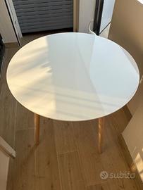 Tavolo tondo stile nordico Bianco con gambe legno naturale Diametro 90 cm Piccola sbeccatura come da foto Solo ritiro no spedizione
