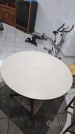 Tavolo con ripiano in formica e base in ciliegio, primi anni '70, in buone condizioni, con ripiano perfetto in formica e minimi dettagli di uso nelle zampe del tavolo, fatte in ciliegio. il tavolo tondo da 4 posti è estendibile per diventare un ampio tavolo da almeno 6 posti. Viene venduto insieme a 4 sedie che fanno parte del set originale del tavolo, in discrete condizioni.