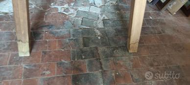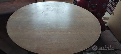 Tavolo tondo in legno, utilizzato sia in cucina che in salotto. I piedi sono stati un po rovinati dall'acqua e risultano scoloriti (come da foto)