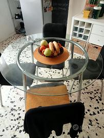 Tavolo piedi metallo e piano in vetro. Diametro 1 metro Vendo perché ho voglia di cambiare. RITIRO a cura di chi compra.