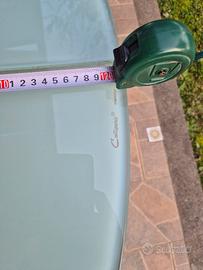 Tavolo tondo in cristallo temperato allungabile. struttura portante e meccanica in acciaio. Diametro (chiuso) 120 cm. Allungato 165 cm. Altezza 75 cm.