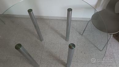 Tavolo con piano tondo in cristallo diametro cm 120 gambe in acciaio cromato