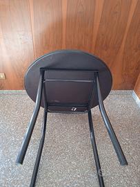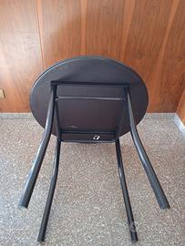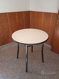 Tavolo tondo con struttura in ferro verniciato nero e piano di appoggio in compensato con rivestimento in formica bianca e bordo rivestito con gomma nera antiurto dimensioni: 80 x 80 x 80