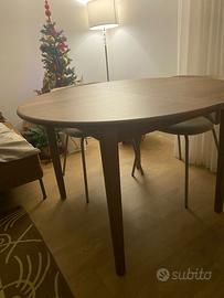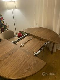 Vendo tavolo tondo in legno allungabile, dal design elegante e moderno, ideale per sala da pranzo o soggiorno. Solido e stabile, si adatta perfettamente sia a spazi contenuti sia a esigenze di ospitalità grazie alla prolunga centrale.