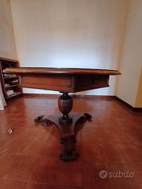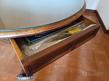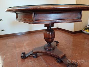 Tavolo tondo in noce stile Ottocento gamba centrale tornita con due cassetti, vetro di protezione. Dimensioni: diametro 122 cm h 80 cm ben conservato. Occasione: Offerta libera! ritiro a carico acquirente.