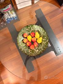 Tavolo moderno, con tipiano rotondo in vetro. Cavballetti regolabili alla base. Molto bello per sale da pranzo o salotti.