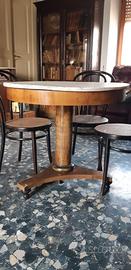 Tavolo tondo inizio '900, ripiano bianco in marmo di Carrara.