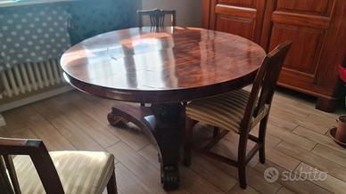 vendo tavolo tondo dell'800 ben conservato completo di 4 sedie. Abito a Cremona città non spedisco. Ritiro presso il mio domicilio a carico dell 'acquirente.