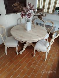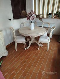 TAVOLO TONDO SHABBY ANTICATO ALLUNGABILE 250 EURO 120 CHIUSO 160 APERTO SEDIE A PARTE 60 EURO L UNA