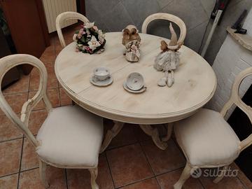 TAVOLO TONDO SHABBY ANTICATO ALLUNGABILE 250 EURO 120 CHIUSO 160 APERTO SEDIE A PARTE 60 EURO L UNA