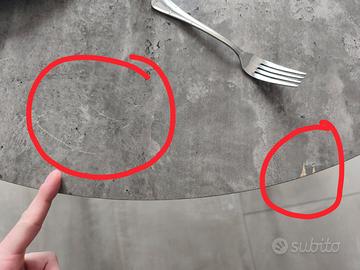 Vendo tavolo tondo color cemento con gambe nero opaco, solido e robusto.