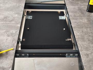 Si apre comodamente da soli, basta una singola persona perché il movimento è sincronizzato mediante carrucole (tirando il lato destro si apre anche il sinistro da solo) , in oltre l'estensione si ripega comodamente all'interno del tavolo stesso e senza dover sorreggere peso, movimenti e leve guidate, vedi immagini