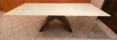 Tavolo Tonin 160x90 allungabile fino a 240. Serigrafato bianco con gamba in pietra laccata color caffè. Qualche segno di usura ma in buone condizioni. Quattro sedie in cuoio color moka con gambe in acciaio. 400 euro in tutto. Ritiro di persona.