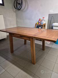 Vendo tavolo in rovere massiccio di qualità.Da chiuso misura 1 metro per 1 metro e si può aprire sia da un lato che dall'altro essendo le aperture indipendenti oguna delle quali misura 40 centimetri.Quindi si può allungare o a 140 o fino a 180 centimetri.Tenuto benissimo sempre coperto con telo cerato sembra nuovo.La qualità costruttiva è impressionante e oggi è raro trovare tavoli così solidi.Per chi ama il rustico ma con un tocco di eleganza.E' un tavolo che se fosse costruito così e venduto nuovo costerebbe minimo 1000 euro.Adatto per chi ha una tavernetta o comunque necessita un tavolo stabile e non ballerino.Il peso è notevole e necessita un mezzo capiente per caricarlo.Non ci sono le sedie.Prezzo trattabile.